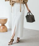 【ニット】 ペプラムシルエットでゆったり着やすいサイズ感でありながらどこかスッキリ見えも叶うニットです。素材は汗ばむ時期も着られるさらっと肌離れの良い糸で、春〜夏まで着ていただけます。 【スカート】38サイズ フロントファスナーがデザインポイントのタイトスカート。ポケットが腰回りをカバーしてくれるので、インスタイルも合わせやすいです。