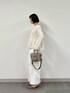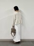 【ニット】 ペプラムシルエットでゆったり着やすいサイズ感でありながらどこかスッキリ見えも叶うニットです。素材は汗ばむ時期も着られるさらっと肌離れの良い糸で、春〜夏まで着ていただけます。 【スカート】38サイズ フロントファスナーがデザインポイントのタイトスカート。ポケットが腰回りをカバーしてくれるので、インスタイルも合わせやすいです。