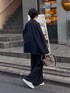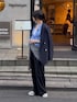ベーシックで使いやすいアイテム達の、定番コーデ。 サンカクストールを加えることで今年らしい雰囲気に。