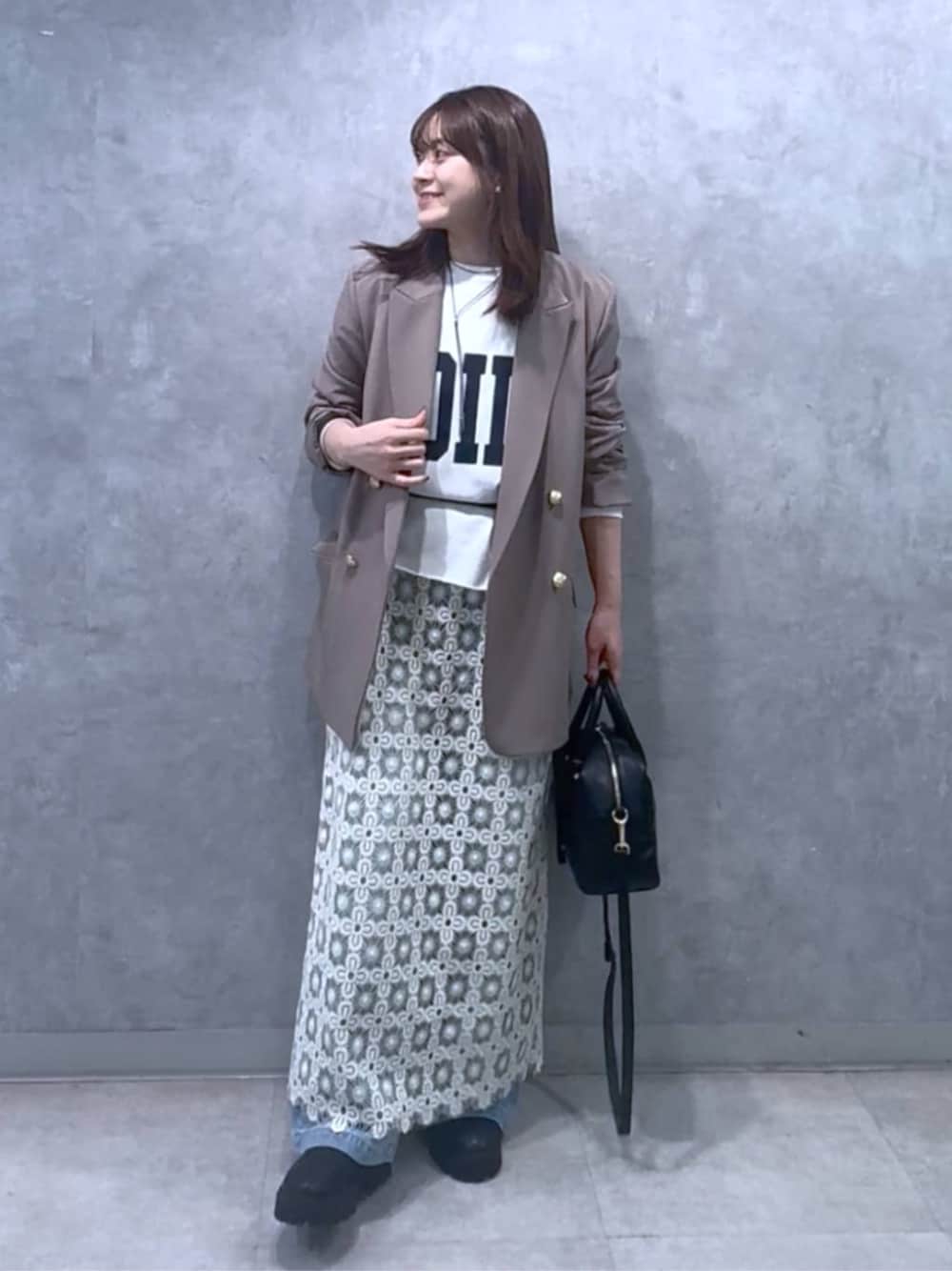 ジャケット きちんと見えしながら女性らしいシルエットのジャケットです。程よく肉感のある2WAYストレッチ素材を使用しており、ジャケット特有の堅苦しさが無くストレスのない着用感も魅力です。メタルボタンで華やかさをプラスしています。 スウェット 落ち感のある素材でオーバーサイズながらすっきり見えが叶うデザインです。首元はボートネックで、さりげなく女性らしさもプラスできます。デイリーに着まわせてすっきり見えも叶う大人のためのロゴスウェットです。 ワンピース ミニマルなIラインシルエットが素敵な総レースのワンピースです。花柄モチーフですが甘すぎず、モダンな印象で着用いただけます。