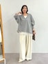 ●スウェット ゆるっと着れる大人スウェット。深めのVネックが好バランスな一枚。薄手な素材で長いシーズン着れるのも◎ ●インナー サテンレースキャミ。プラスするだけでトレンドライクなコーデに。 ●パンツ 38サイズ着用。人気のワイドパンツ。落ち感あり華奢見えがうれしいポイント。 ◎きれいめカジュアルなスウェットコーデ。レース合わせがおすすめ。