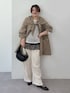 羽織るだけでサマになる!ストール付きコートです。 ストールのアレンジが自在で、今回は王道に肩に巻いたアレンジです。