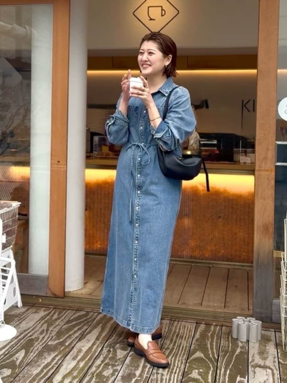 よっしーさんコラボのデニムワンピースは、 「楽に着られて、きれいに見える」 そんな大人のためのワンピースです。 1枚でコーデが完成するのに、着回し力も抜群! ジャケットを合わせればお仕事やお出かけにも、スカート風に腰巻きしてトップスを合わせたり、羽織としてもマルチで使えます! 縦ラインを強調するデザインなので、 骨格ウェーブさんもすっきり細見え♪ さらにSHIHOさんコラボのレザーバッグは シボが上品なオンオフどんなシーンにもピッタリのバッグ。 持ち手が調節できるので持ち方自在で便利です。