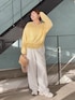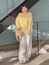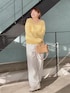 通勤に使える楽ちんな スウェットコーデ イエローが映える春ニット 合わせで、キレイ目✖️カジュアルにすると 通勤にも使える 大人カジュアルコーデ完成ですよーっ