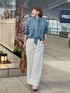 普段白パンツは、 膨張してしまうかも、、 と、思ったりして敬遠しがちやけど、 これは、 落ち感あってスッキリ見えを 叶えてくれるから ホワイトデニムを着用出来ました! デニムのボウタイブラウスを パンツ合わせることで 甘くなり過ぎず バランスよくおしゃれに着れるよ!