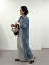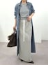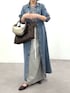 デニムシャツワンピースはアウター感覚で着用いただくのもおすすめ。 グレー、ブラウンのニュアンスカラーでハンサムな綺麗めカジュアルコーデに
