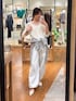 ニットはすっきりとしたサイズ感なので一枚ではもちろん、 ジャケットなどのインナーにもおすすめ◎ しゃりっとした清涼感ある素材で初夏まで楽しめます! スウェットパンツは36サイズを着用。 ゆったりと履けてストレスフリー! 裾にゴムが付いているので、すっきり履きたいときは絞るのがおすすめです。