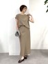 上下ともに程よくゆとりのあるシルエットで 身体のラインを拾いすぎず、 気負わず着られるのにきちんと見えも叶います。 セットで着るとワンピース見えして コーデに悩まないのも嬉しいポイント。 それぞれ単品でも着回しが効くから、 スタイリングの幅もぐっと広がります◎ 柄バッグをアクセントに、 シンプルな中にさりげない華やかさをプラス。 ラクさもきちんと感も欲しい日に頼れる一着です。