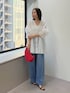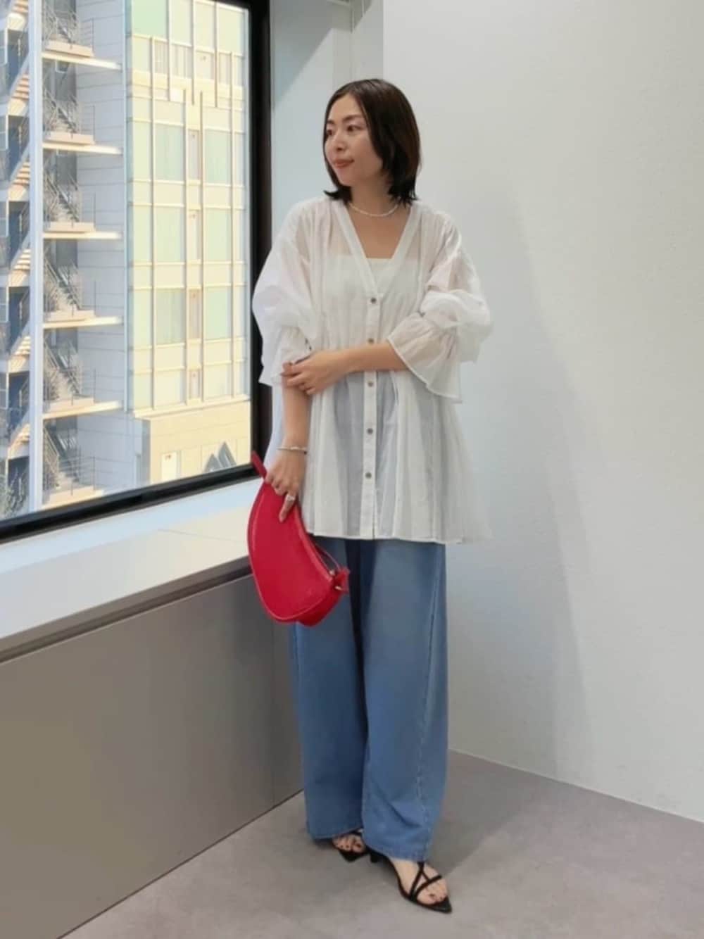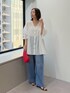 ●ブラウス ふんわりシルエットのブラウス。ペプラム切替でエアリーな軽い着心地です。 ●パンツ 38サイズ着用。デニムライクなパンツは、ストレスフリーな履き心地。しっかりめな生地感で、ラインを拾わず履けます。 ◎きれいめカジュアルなブラウスコーデ。バッグを差し色にしました。