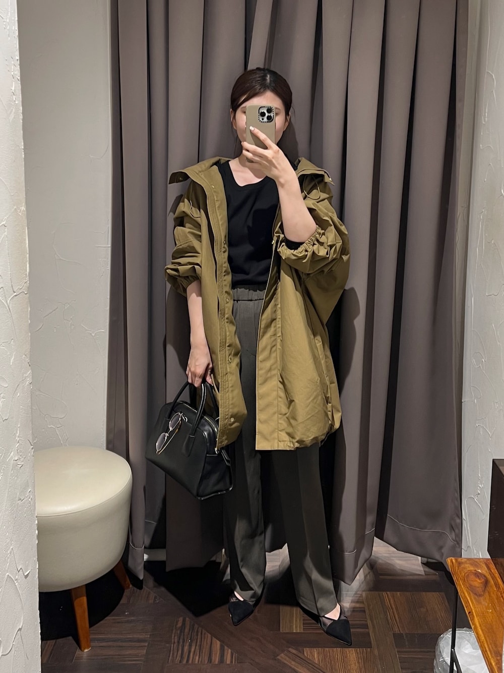 抜け感あるドルマンシルエットが女性らしく羽織れる撥水アウター 袖口はたっぷりとしたゴムギャザーで、ブラウジングが決まりやすく 実用性がありながら、着こなしに鮮度がだせる1枚です! ゆったりとしたサイズ感で、厚手のニットの上からも羽織れるので季節長くお使いいただけます♪ 着こなしに取り入れやすいシンプルロンT サイズ感 ややコンパクトめなサイズ感です! 素材感 綿100%で柔らかく伸縮性がある素材感です♪ 着心地 サラッと着れます! デコルテすっきりと見えるネックラインです☆ 履くだけでスタイルアップが叶うフレアパンツ 着用サイズ 36 サイズ感 もも張りの方は少しぴたっとなるサイズ感です! 素材感 2wayストレッチでイージーケアできるポリウール梳毛素材です! 着心地 ウエストゴムで楽ちんです♪ すっきりとスタイルアップしてくれるセンタープレスの入ったフレアシルエットです!
