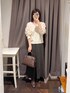 女性らしいデコルテラインのシンプル深Vニット サイズ感 長過ぎない丈感で、低身長さんもきやすいです! 素材感 メリノウール100%のふくらみのある糸を使用してます! 着心地 暖かくて着やすいです! vネックで顔周りがスッキリ見えします♪ 広がらないシルエットがスッキリ見えするマーメイドスカート 着用サイズ 36 サイズ感 36サイズは155cmで足首が隠れる丈感です! 素材感 シルキーなキュプラとリサイクルポリエステルを組み合わせたサスティナブル素材 です♪ 着心地 ウエストゴムで楽ちんです! ストンっと落ちてるシルエットなのでスッキリ見えします◎