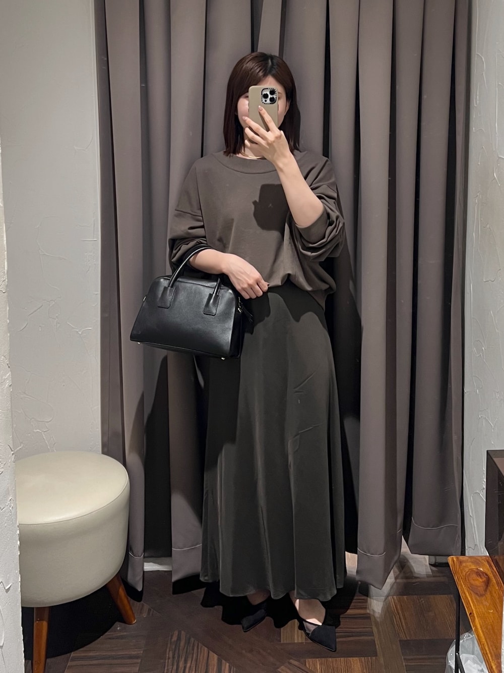 アカネ(RIVE DROITE 恵比寿アトレ)のスカート「【上品な揺れ感】キュプラ混バイアススカート」を使ったコーディネート