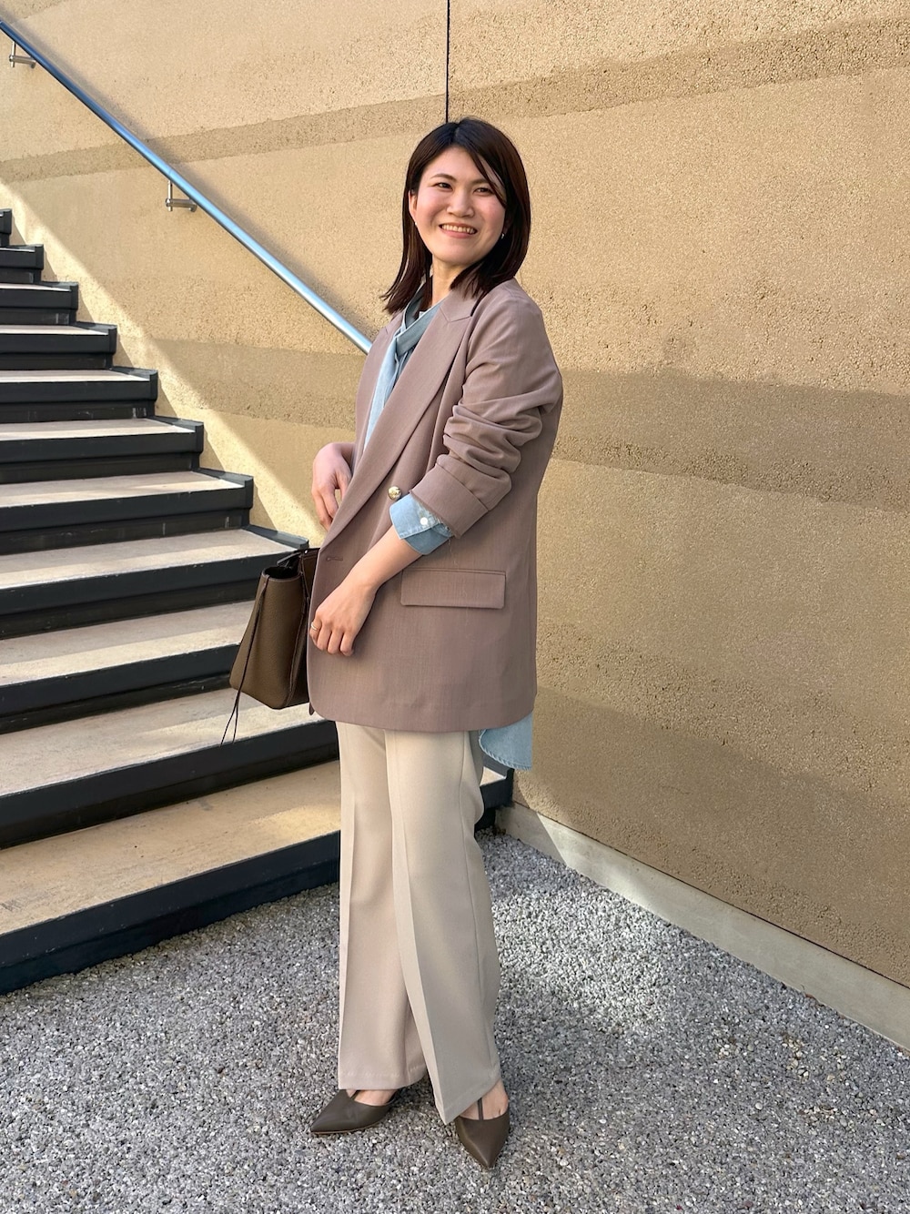 羽織るだけでコーディネートを格上げするすっきりジャケット サイズ感 155cmでお尻が隠れる丈感です! 素材感 ポリエステル94%でシワになりにくいお素材です♪ 手洗い可能なのも嬉しいポイントです! 着心地 軽くて羽織りやすいです! オンオフ使えるシンプルジャケットです◎ 結び方で印象が変わる!洗練デニムボウタイシャツ サイズ感 ゆったりめなサイズ感です! 素材感 ソフトで落ち感のあるセルロース混デニムを使用 してます♪ 着心地 サラッと着れます! ボウタイはサラリと結んで抜け感を出すのがおすすめです☆ 履くだけでスタイルアップが叶うフレアパンツ サイズ感 もも張りの方は少しぴたっとなるサイズ感です! 素材感 縦横に伸びるストレッチ性もポイントのお素材です! 着心地 ウエストゴムで楽ちんです♪ すっきりとスタイルアップしてくれるセンタープレスの入ったフレアシルエットです!