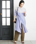 なみのワンピース「ブロッキングストライプシャツワンピース」を使ったコーディネート