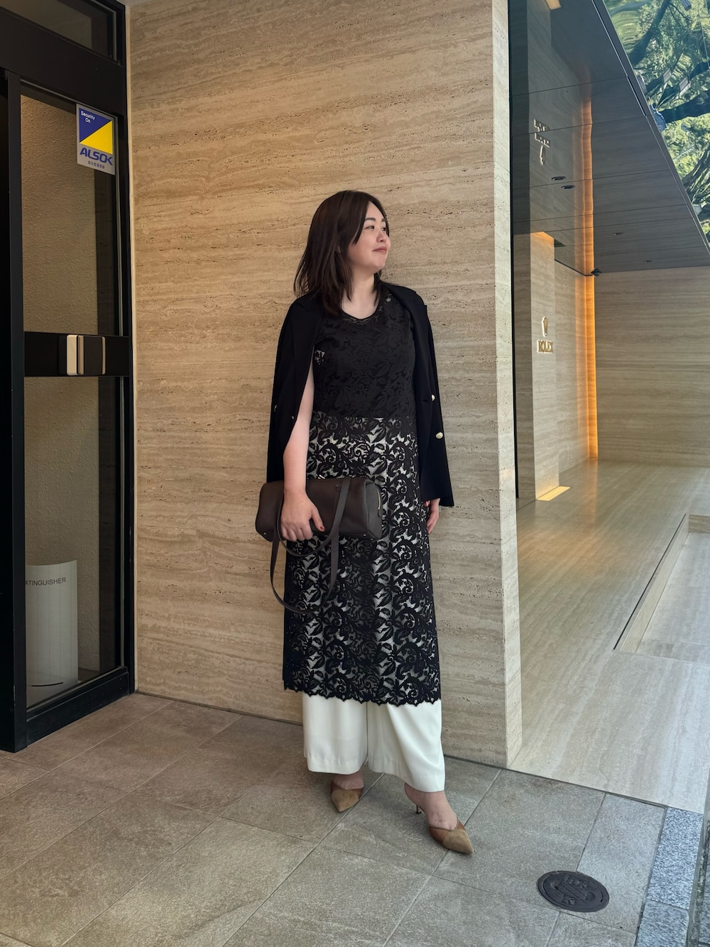 冷房対策にもオススメなニットジャケット。 カッチリしすぎず、程よくラフなスタイルに。 レースのワンピースは前後2wayで着回しがきいて、着回し力も○ パンツ/38サイズ パンプス/38サイズ