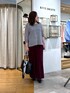 トップスは、麻入りのシアー素材のニット。 シアー感があって、肌離れが良いのでサラッとした着心地。 パンツは、デイリー使いにピッタリな万能パンツ。 ウエストの後ろがゴムになっていて、履きやすさも◎ パンツ/38サイズ