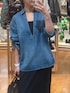 リブタンクワンピースにデニムシャツをレイヤード♡ ワンピースはノースリーブのため重ね着しやすいのもポイント◎ 秋冬も大活躍間違いなしです!