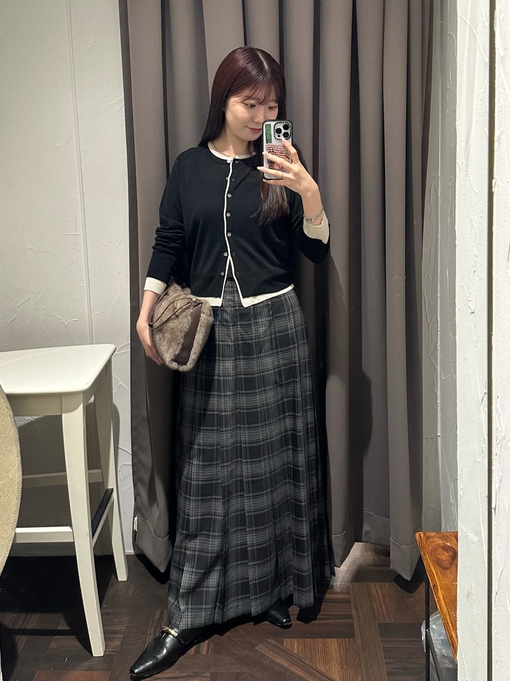 トップスは、カーディガンを重ね着したようなフェイクレイヤードデザイン。 トレンドのレイヤードを気負わず取り入れられるカーディガンです。 素材はひんやりサラっとした肌ざわりで、快適な着心地です。 コンパクトなサイジングながら動きやすいデザインも魅力です ボリュームシルエットのボトムと相性良く合わせていただけます! スカートは、秋のトレンドのチェックをいち早く取り入れられるプリーツスカート。 ウール素材なので、軽やかながら暖かみを感じる秋にピッタリのアイテムです。 後ろベルトはゴム仕様でストレスフリーな着心地です。 着るだけで秋のムード引き寄せる存在感のある一着です。