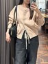 トップスは、季節の変わり目にぴったりなニットブルゾン。 前を開けて羽織としても、閉じてプルオーバーとしても使える2WAY仕様です。 裾リブ・袖リブ付きでバランス良く着用できる着丈もポイント。 袖口をたくし上げやすいデザインなので気温調節もしやすくなっています。 ボトムスは、スウェットパンツとデニムパンツをドッキングさせたようなキャッチーなデザイン ウエストはドロストゴムでリラクシーながらすっきりとした見え感です! おしゃれなデザインで目を引くアイテムです