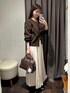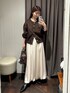 カーディガンは、季節の変わり目にぴったりなニットブルゾン。 前を開けて羽織としても、閉じてプルオーバーとしても使える2WAY仕様です。 裾リブ・袖リブ付きでバランス良く着用できる着丈もポイント。 袖口をたくし上げやすいデザインなので気温調節もしやすくなっています。 スカートは、上品な光沢感が美しい、サテン素材のバルーンスカート。 少し落ち感のある素材なので、ウエストから広がらず ボリューム感は控えめでモードな印象に。 立体的なバルーンシルエットで女性らしく着用いただけます。 裾にボリュームがあるので、足がすっきり見えるのも嬉しいポイント。 シンプルなニットやデニムシャツと合わせるだけで着映えが叶う一枚となっております。