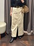トップスは、ウール100%の暖かなニット。 浅めのボトルネックで着る人を選ばず、すっきりとした印象でお召いただけるため、長めのタートルネックは苦手という方にもオススメの一着。 全体は身体のラインを拾わないゆったりとしたサイズ感ですが、着丈が長すぎないためコンパクトな印象に! スカートは、今季トレンドのスエード風素材を使用したシーズンムードを感じられるアイテム 独特のタッチと品の良い色合いでキレイめな印象ながら、カジュアルなアイテムとも好相性。 ウエスト周りが綺麗に見えるハイウエスト フロントスリットで抜け感もプラス。足さばきも良く安心して着用いただけます