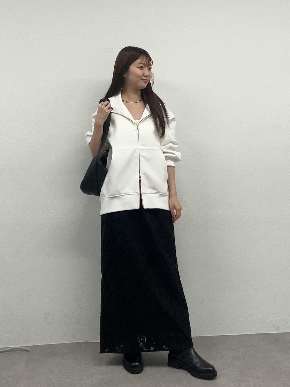 パーカーは、ダンボールの素材感で軽くさらっとした手触りで着心地がとても良いです! パーカーなのにきれいめ使いできるのも嬉しいポイント! スカートは、レースのデザインでおしゃれみえしてくれるアイテムです!