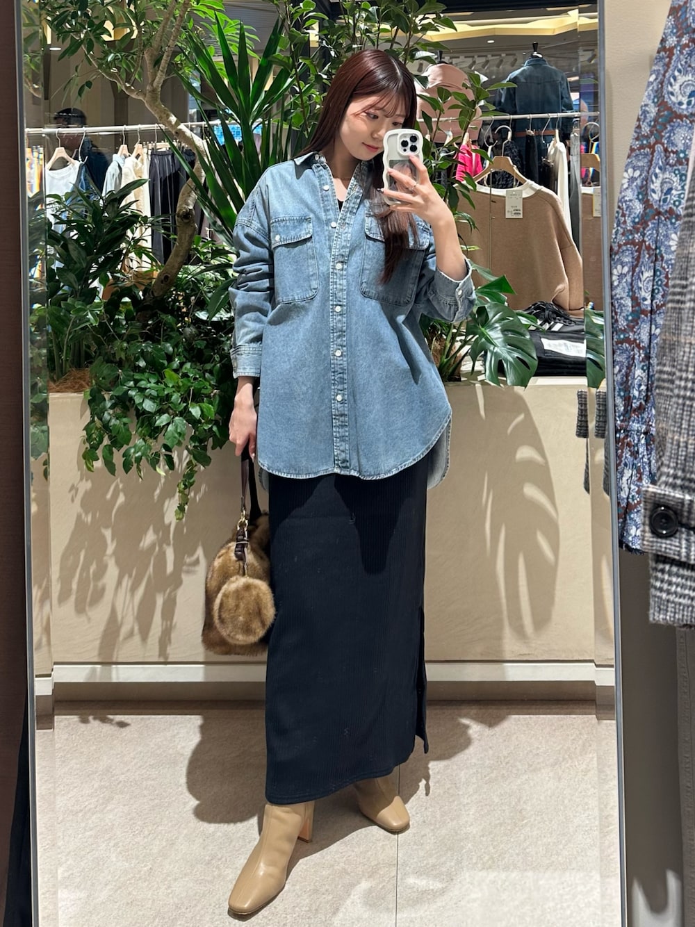 デニムシャツは、カジュアルにもキレイめにも使いやすい万能アイテムです! 今回みたいにワンピース合わせで大人カジュアルに着るのも可愛いです! ワンピースは、フィットしすぎず落ち感がきれいなので1枚で着てもトップスと合わせても着れる万能アイテムです!!
