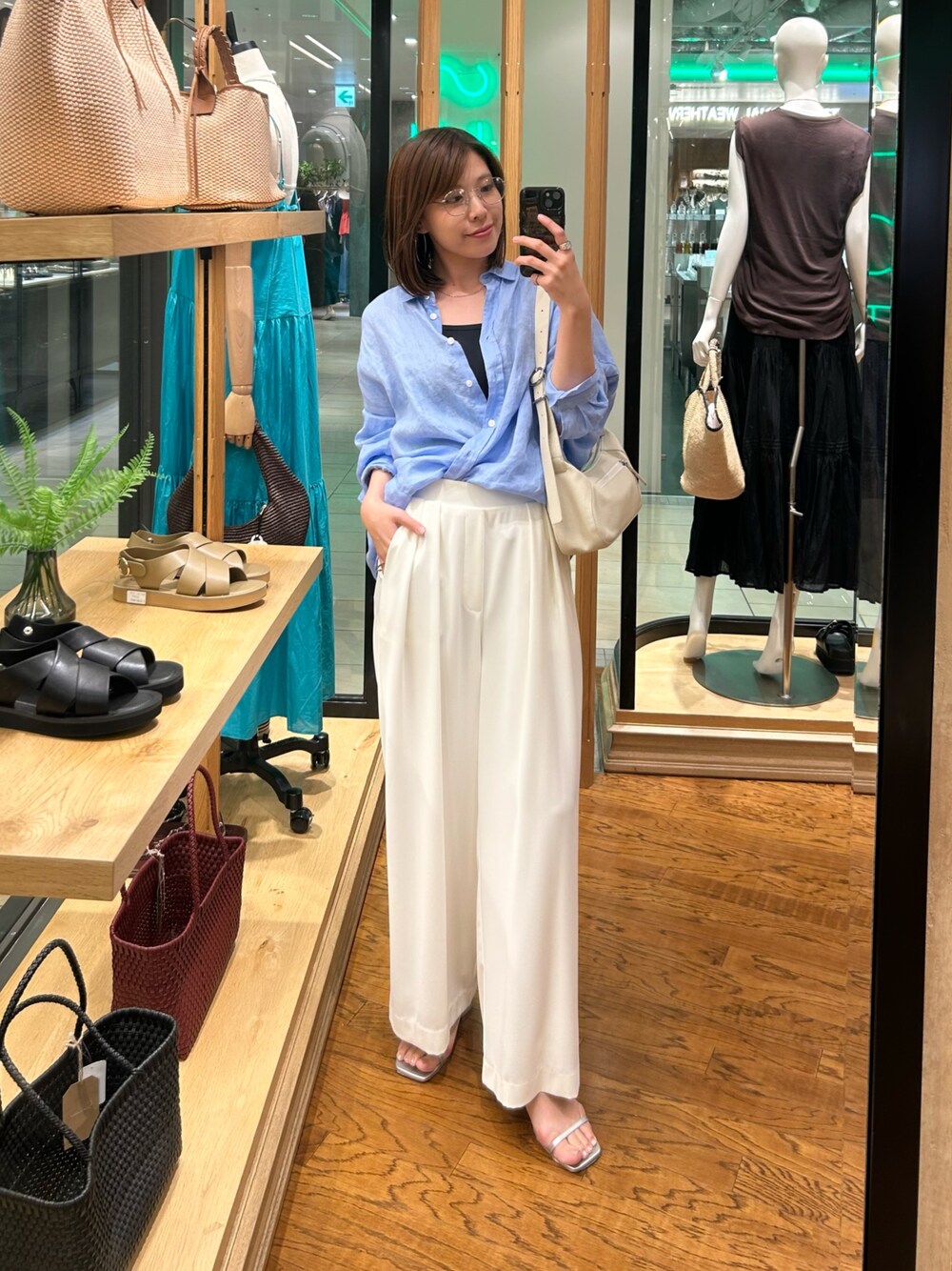 ・シャツ ナチュラルで程よくシアー感のある大人っぽいリネンシャツ。 少しゆったりとしたルーズなサイズ感は、一枚で着るにも羽織としても大活躍。 さらりとしたリネン素材で肌当たりも心地よく、さりげなくシーズンムードを高めてくれます。 お尻も隠れる丈感でパンツにもスカートにも合わせやすい使い勝手抜群のアイテムです。 ・パンツ(着用サイズ36) 後ろゴム仕様、ゆったりとしたシルエットで、イージーな履き心地ながら綺麗見えが叶う優秀なスラックスが登場。 ファスナーがなく脱ぎ着もラクチン。タック入りで気になる腿周りをカバーする嬉しい効果も。 お仕事にはもちろん、お休みの日のカジュアルコーデや、学校行事などにもオススメのアイテムです。 好評だったブラウンが秋カラーとしてリバイバルします。