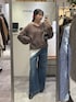 ⚫︎ルーズフレアデニム 38サイズ着用。分厚すぎない生地で履き心地抜群!太すぎず細すぎずで痩せ見えします◎ ⚫︎メランジフェザー2wayニット ふわふわで肌触りの良いニット。着心地抜群で毛抜けしにくいのも嬉しい。お家でお洗濯が可能です。前後2wayなので雰囲気変えてきていただけます。