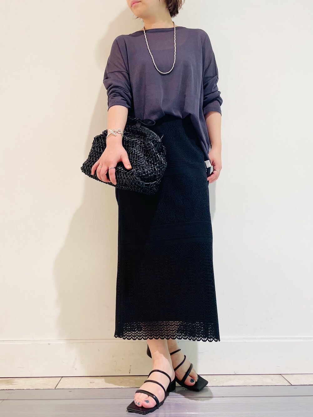 シアートップス✖️レーススカート🌷 甘くなりすぎないようにダークな色でまとめてみました⭐️