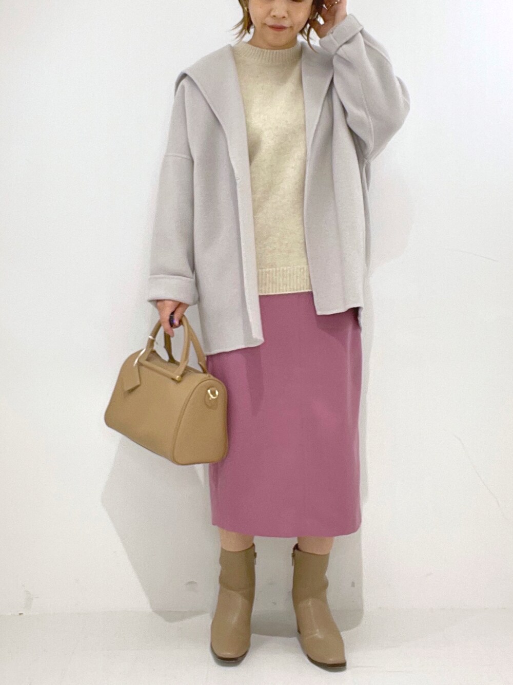 優しい色合いでオフィスコーディネート💻 コートはザックリ羽織れてとても軽いです。肉厚なニットにも羽織れます。 タイトスカートは春先にかけても履いていただけるカラーです🌸