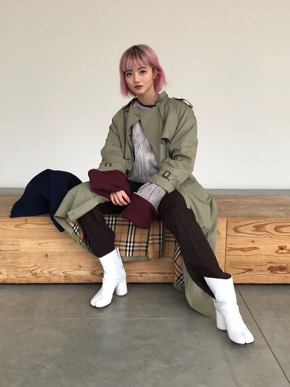 さむい日のトレンチコートは インナーを重ための素材にして季節感無視しすぎないように。