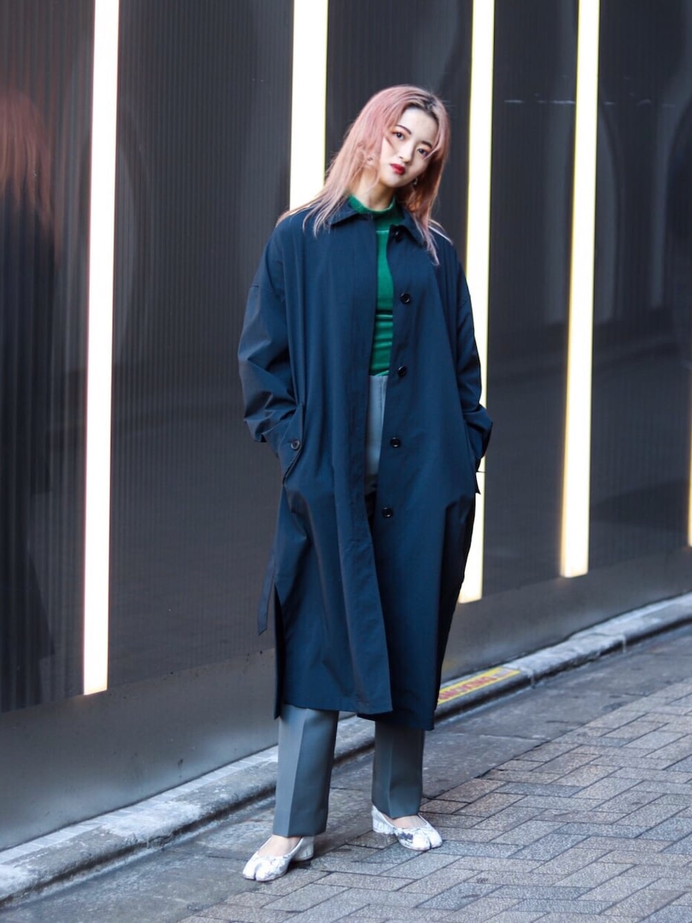 rio shimizuのステンカラーコート「JW タスラン前比翼コート」を使ったコーディネート