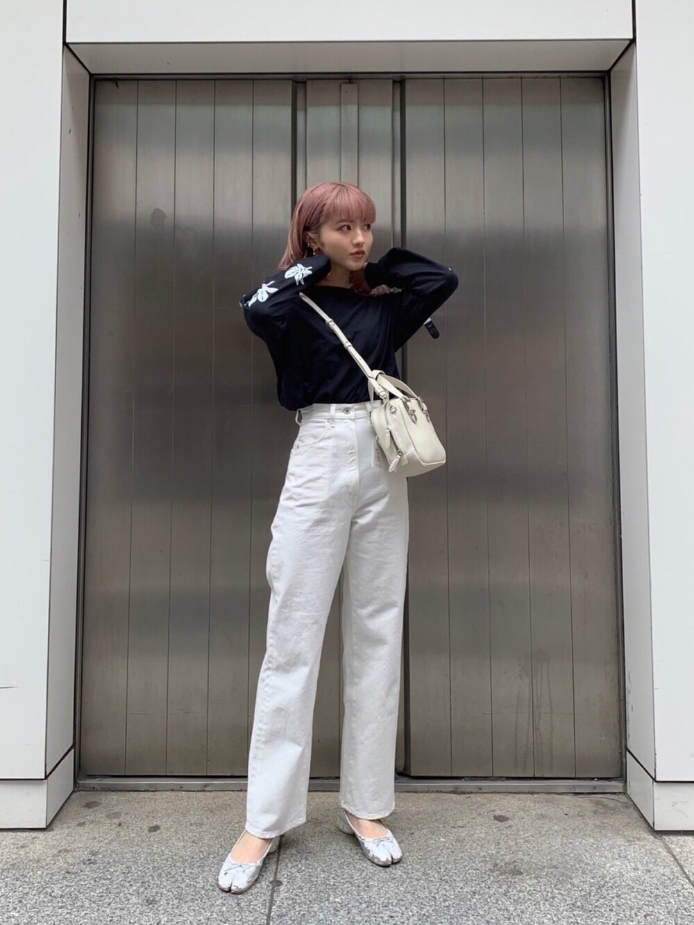 細めのストレートデニムとカットソーでシンプルに。 白ベースにして、カジュアルダウンしすぎないようにしました◎ insta @ppg_dnc