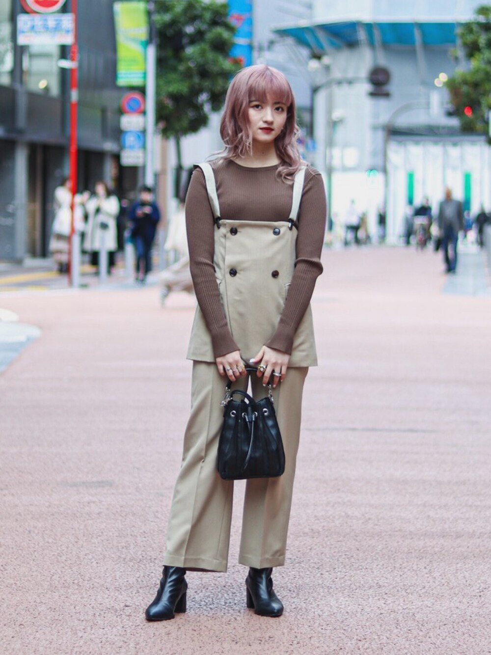 ameriのセットアップに インナーを同色であわせました 甘くなりすぎないように小物類は黒で◎