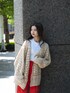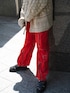 赤いフライトパンツを差し色にハンドメイドカーディガンを合わせたラフなスタイリング。 ピクニックとか公園に行きたい🥤 楽な着心地なのにどこか女性らしさも♡ メイクは春っぽくピンク系の色味でまとめました。 instaに毎日スタイリング載せてます✨ @ppg_dnc