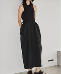 insta @ppp_dnc todayfulの異素材切り替えワンピース ずるずるの丈感がタイプ🖤