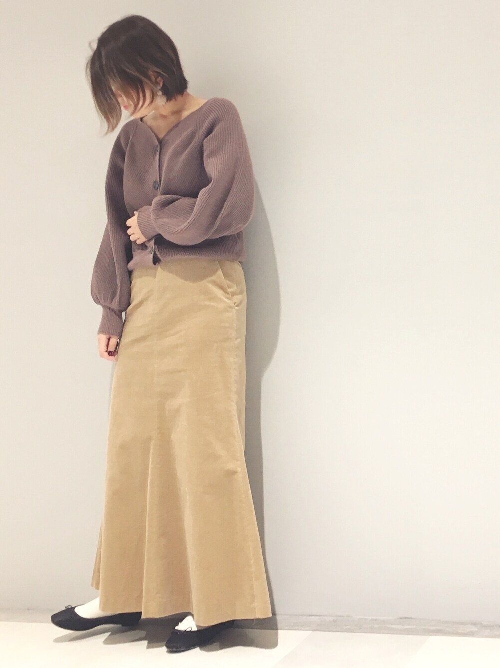 asuka.k(RIVE DROITE本部)のスカート「ストレッチコールロングマーメイドスカート」を使ったコーディネート