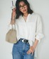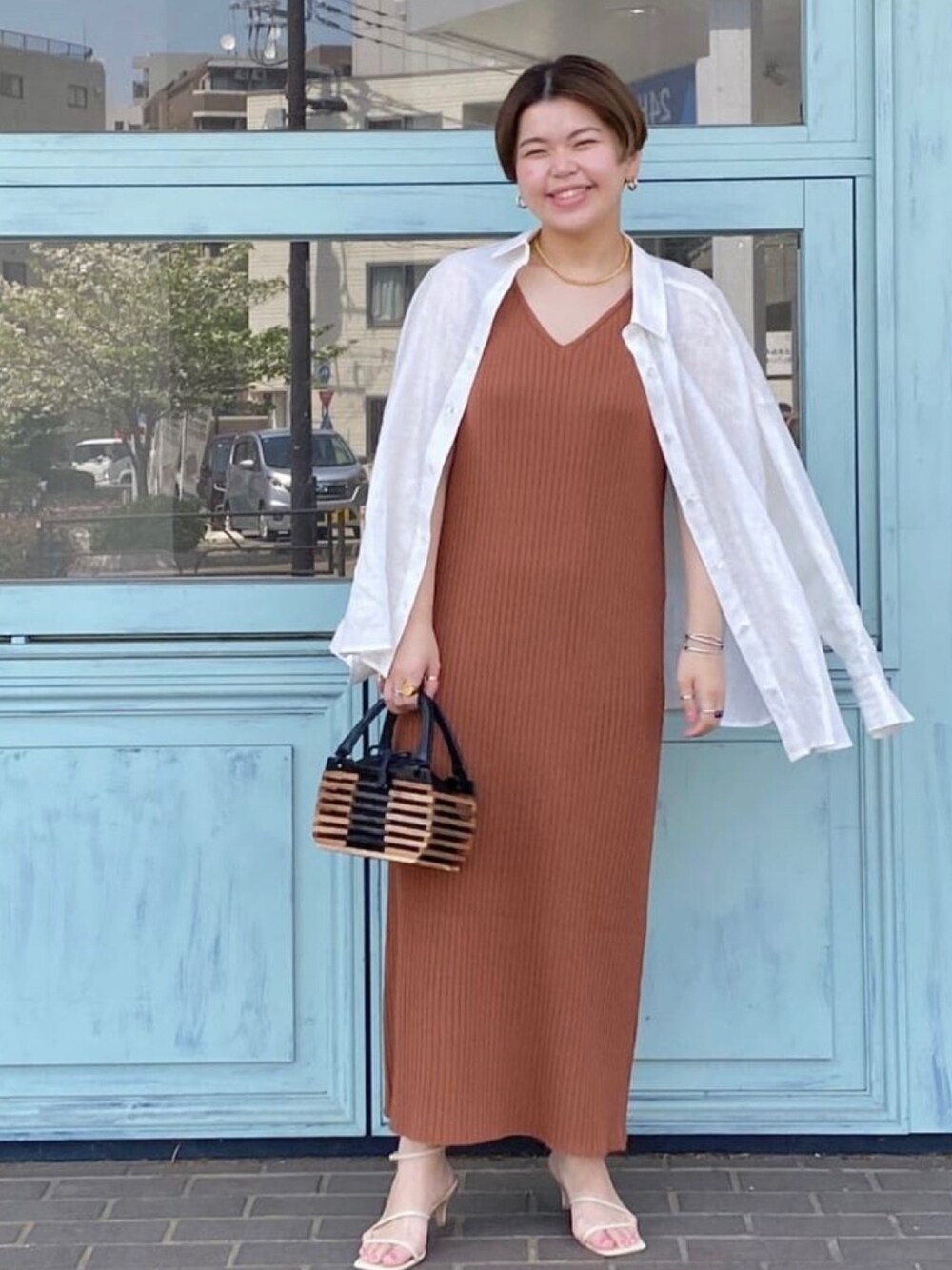 ニットワンピースにリネンシャツを羽織って、日焼けや冷房対策もバッチリ!
