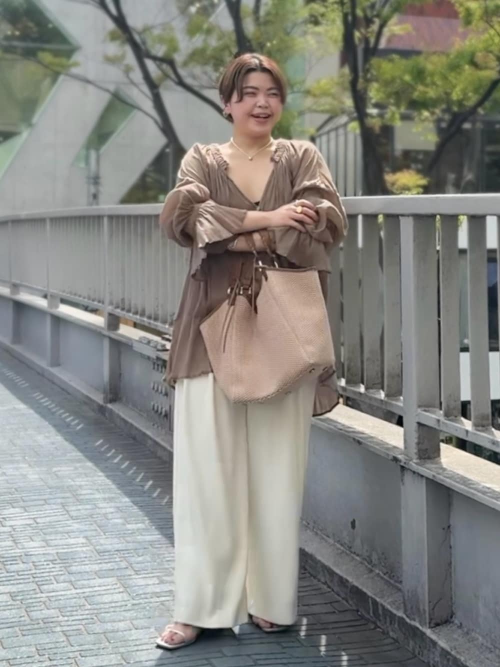 夏に着たくなるアースカラーを爽やかなホワイトで合わせました! 体型カバーしながらオシャレに見えるカラー合わせ!