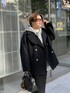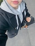 カジュアルにも、綺麗めにも合わせやすい、Pコート! ダークトーンでまとめて細見えも! パーカーのレイヤードにホワイトを挟むと軽やかになります!