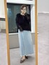 春も使えるセールで買えるデニムスカート! スッキリ見えするブラックで合わせてモードなコーデに!