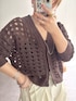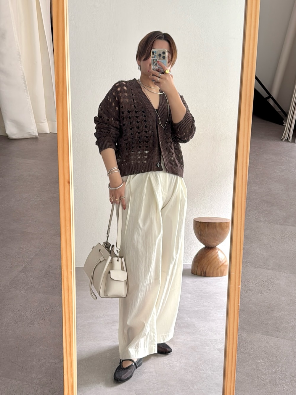 透かし編みの着るだけで春っぽく見えるカーディガン! インせずスッキリ着れる!