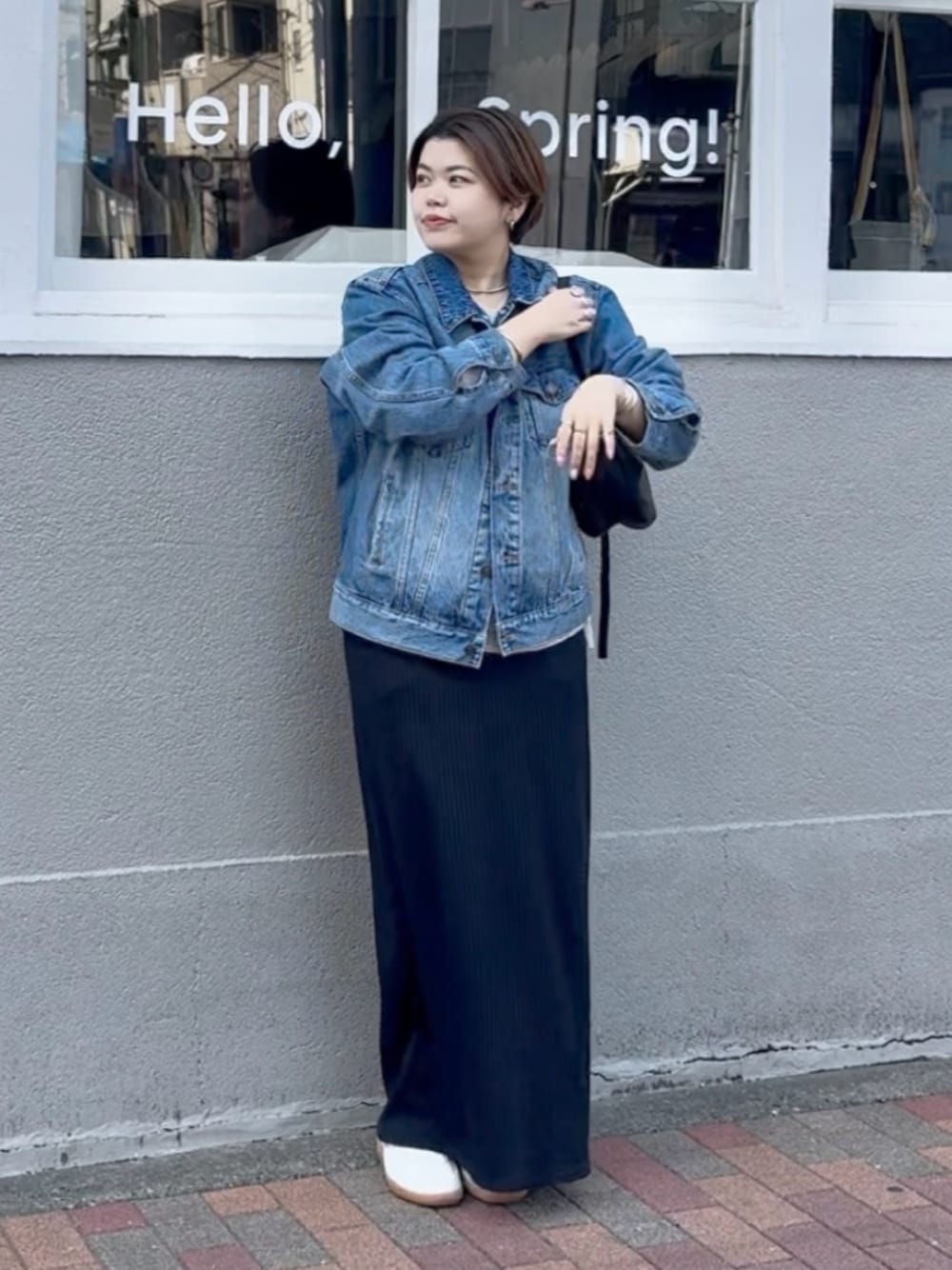 春に着たい王道のデニムジャケットとワンピースのコーデ! 冬コートのインナーにもおすすめ!