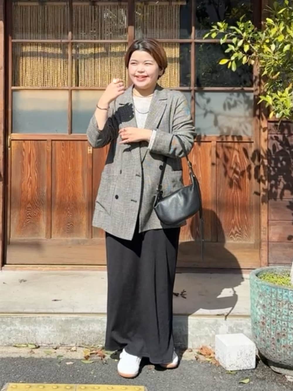 asuka.k(RIVE DROITE本部)のテーラードジャケット「予約【洗練されたムードに】カラミチェックオーバージャケット」を使ったコーディネート