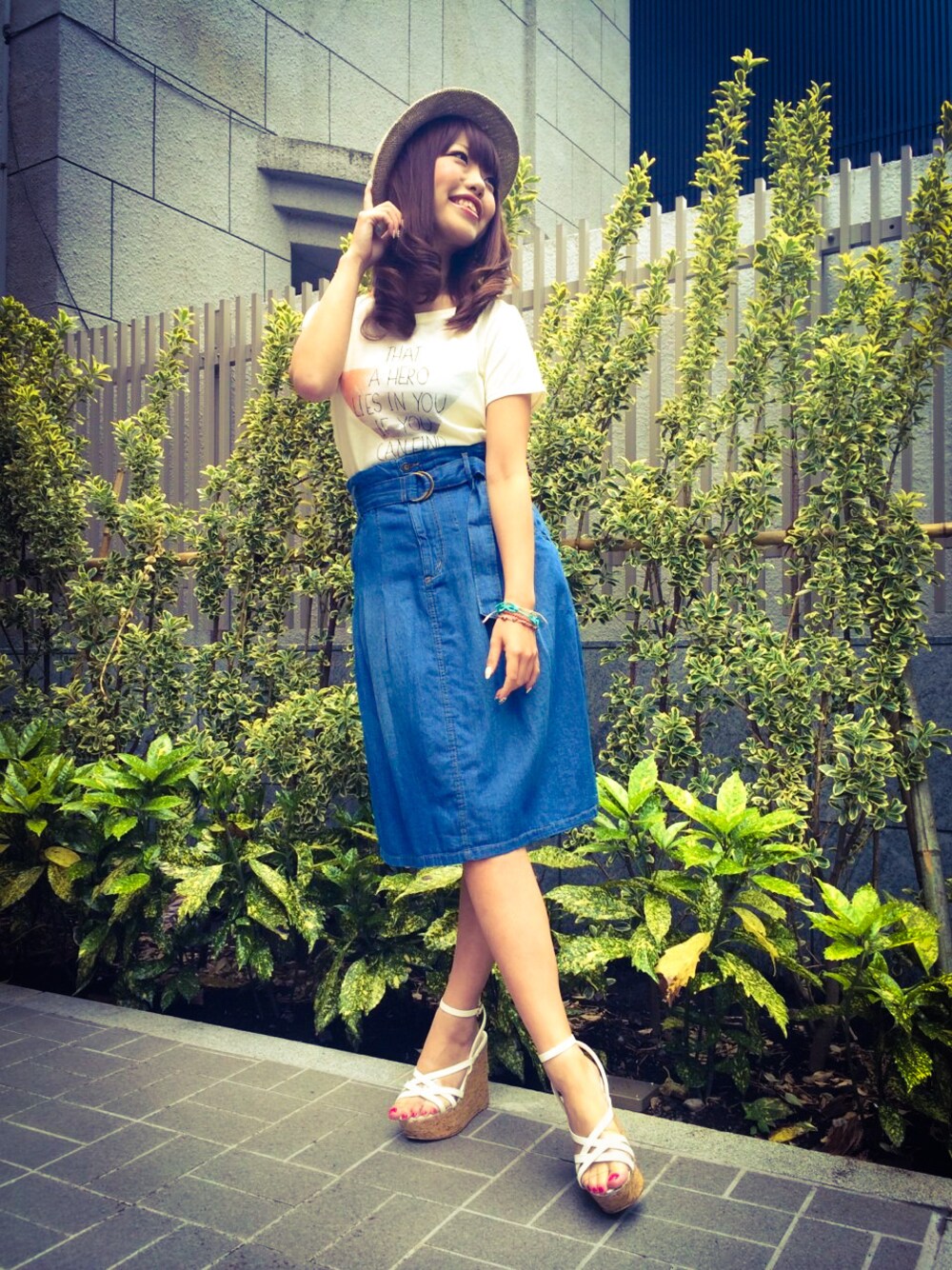 ロングTシャツをINして 韓国でGETしたハワイ柄HATをプラス! ゆる girly summer style♡ このTシャツ、Backが総レースでお気に入り♪