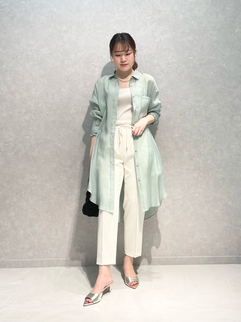 爽やかなグリーンシャツのコーディネート。 1枚で着るのも素敵ですが、羽織るのもオススメ◎ ほんのり透け感があるので着るだけでオシャレ見えします!