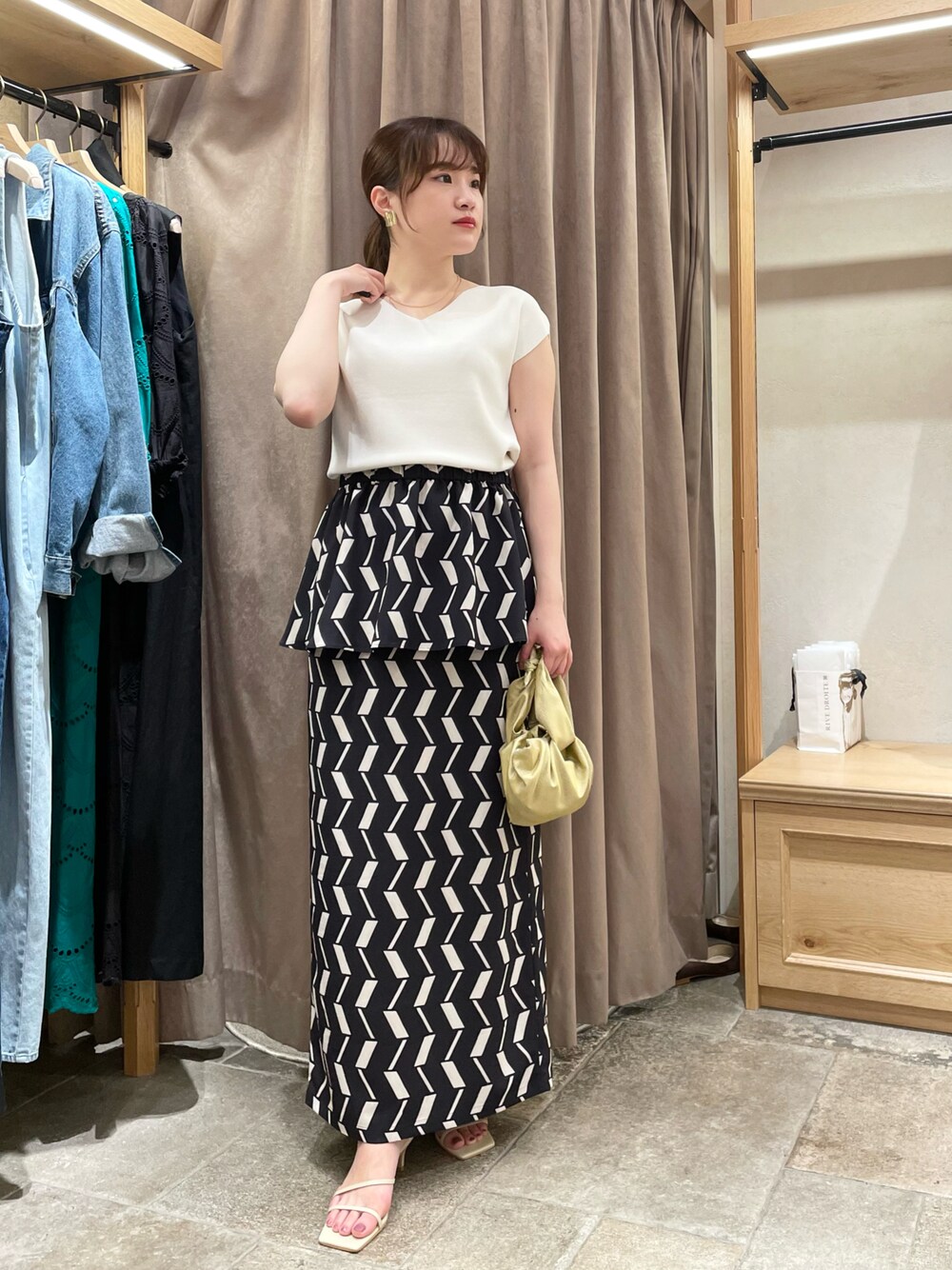 接触冷感、UVカット機能が付いた夏に万能なベーシックニット🌞🌴 フレンチスリーブなので、1枚でも着やすいシルエットになっています。 3WAYで着られるスカートとコーディネート。腰周りのペプラムは取り外しが可能なので、外して着用したり、ベアトップとして着用もできます! 色々な着こなしが楽しめそうです🐈⬛✨️