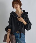 RUNA(RIVE DROITE有楽町)のシャツ/ブラウス「【リバイバル】ドロストフリルカラーブラウス」を使ったコーディネート
