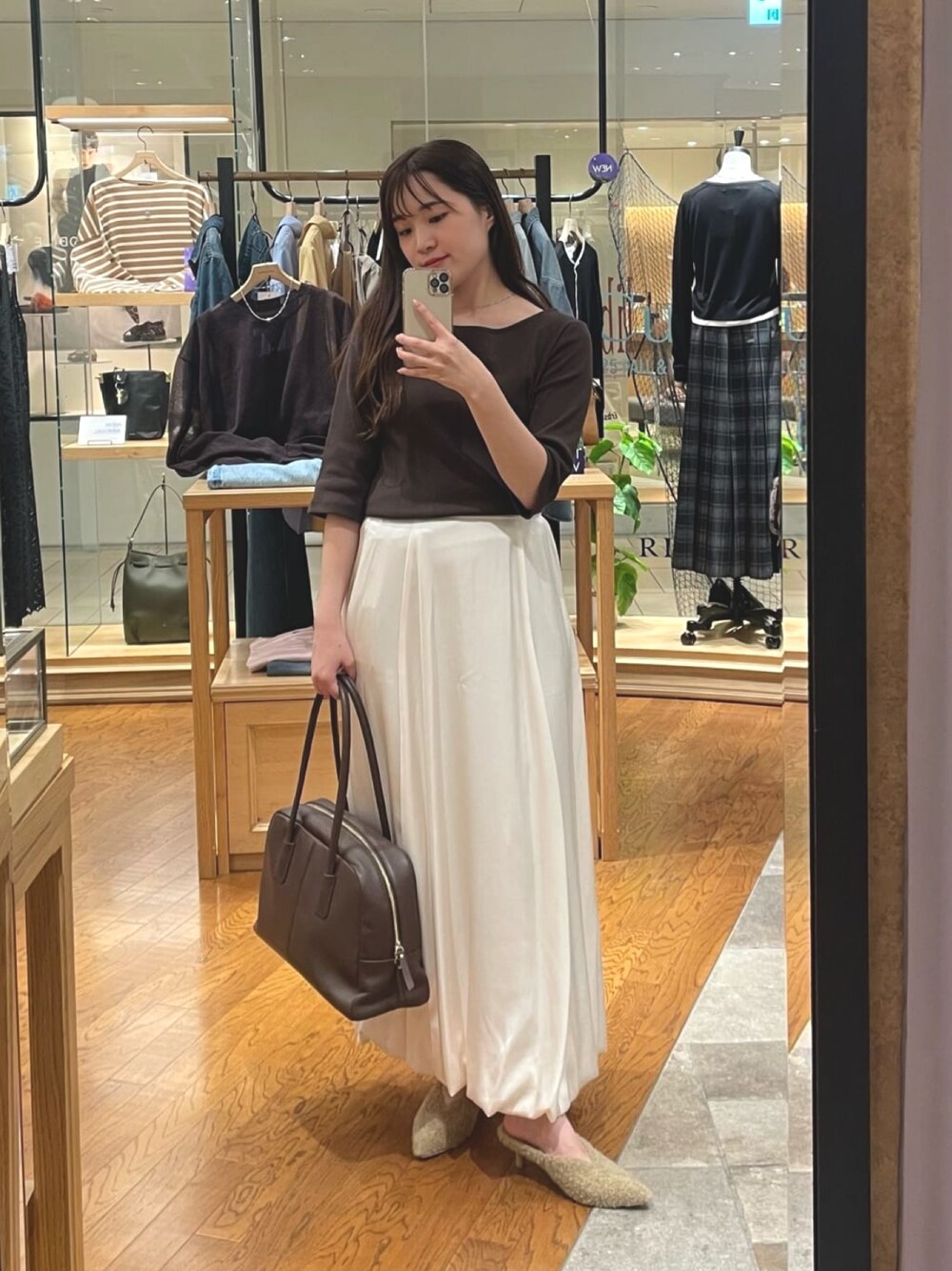 RUNA(RIVE DROITE有楽町)のスカート「【美シルエット】サテンバルーンスカート」を使ったコーディネート